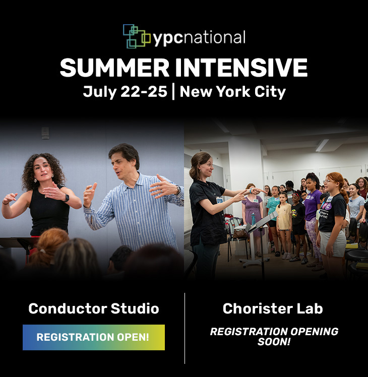 YPC National Studio includes workshops, clinics, master-classes, symposia and artist residencies for educators, choral conductors, and directors. Learn more about this year’s Summer Studio for Teachers!