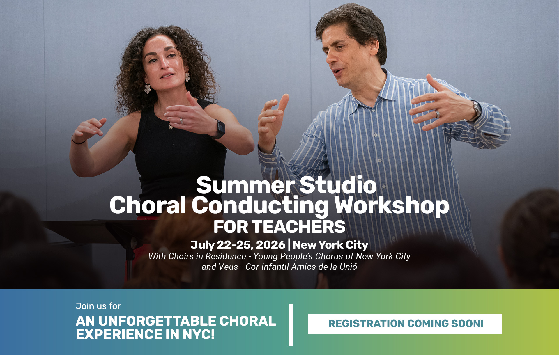 Explore repertoire from a wide range of traditions and styles, as well as a world premiere by YPC National’s composer in residence. Conduct the YPC National Lab Choir in masterclass and performance, including members of the Young People’s Chorus of New York City and this year’s Guest Choir, Veus – Cor Infantil Amics de la Unió!